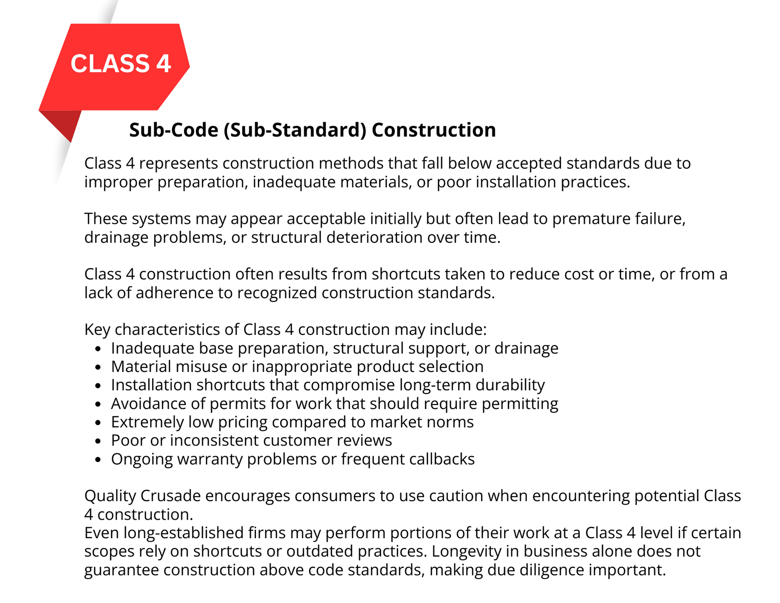 Quality Crusade introduces a four-tier classification framework designed to clarify the real differences between approaches, systems, and contractors.